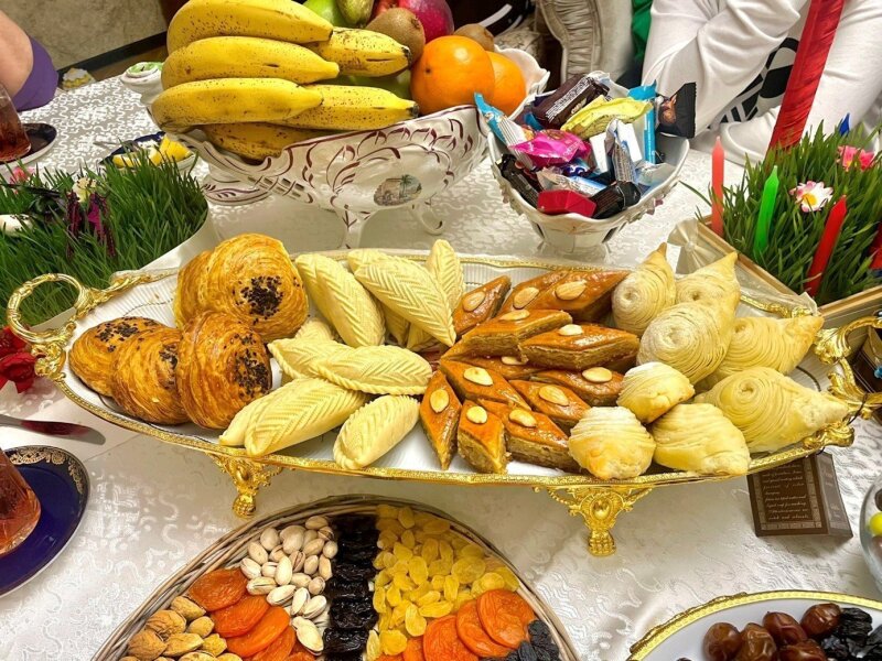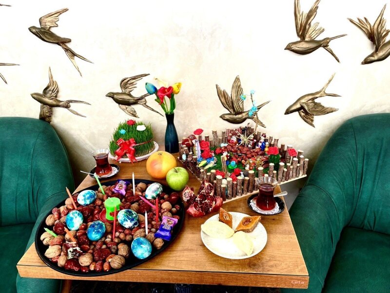 During the Soviet era and in the early years of independence, Novruz was celebrated mainly in private homes. The four Tuesdays leading up to the holiday—dedicated to water, fire, wind, and earth—were a time of preparation. Women baked pakhlava, shekarbura, badambura, and gogal, cooked plov and various meats. The air was filled with the scent of honey and cardamom. Men jumped over bonfires, children knocked on doors and hid, hoping for sweet treats placed in the hats they left behind. Candles burned in homes to ensure prosperity, and green semeni (wheat sprouts) symbolized abundance.